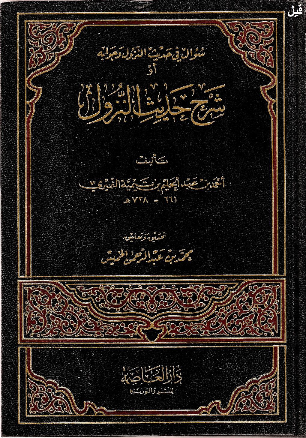 وقال في كتابه شرح حديث النزول ما نصّه: » والقول الثالث وهو الصواب وهو المأثور عن سلف الأمة وأئمّتها أنه لا يزال فوق العرش, ولا يخلو العرش منه مع دنوه ونزوله إلى السماء, ولا يكون العرش فوقه » اهـ
