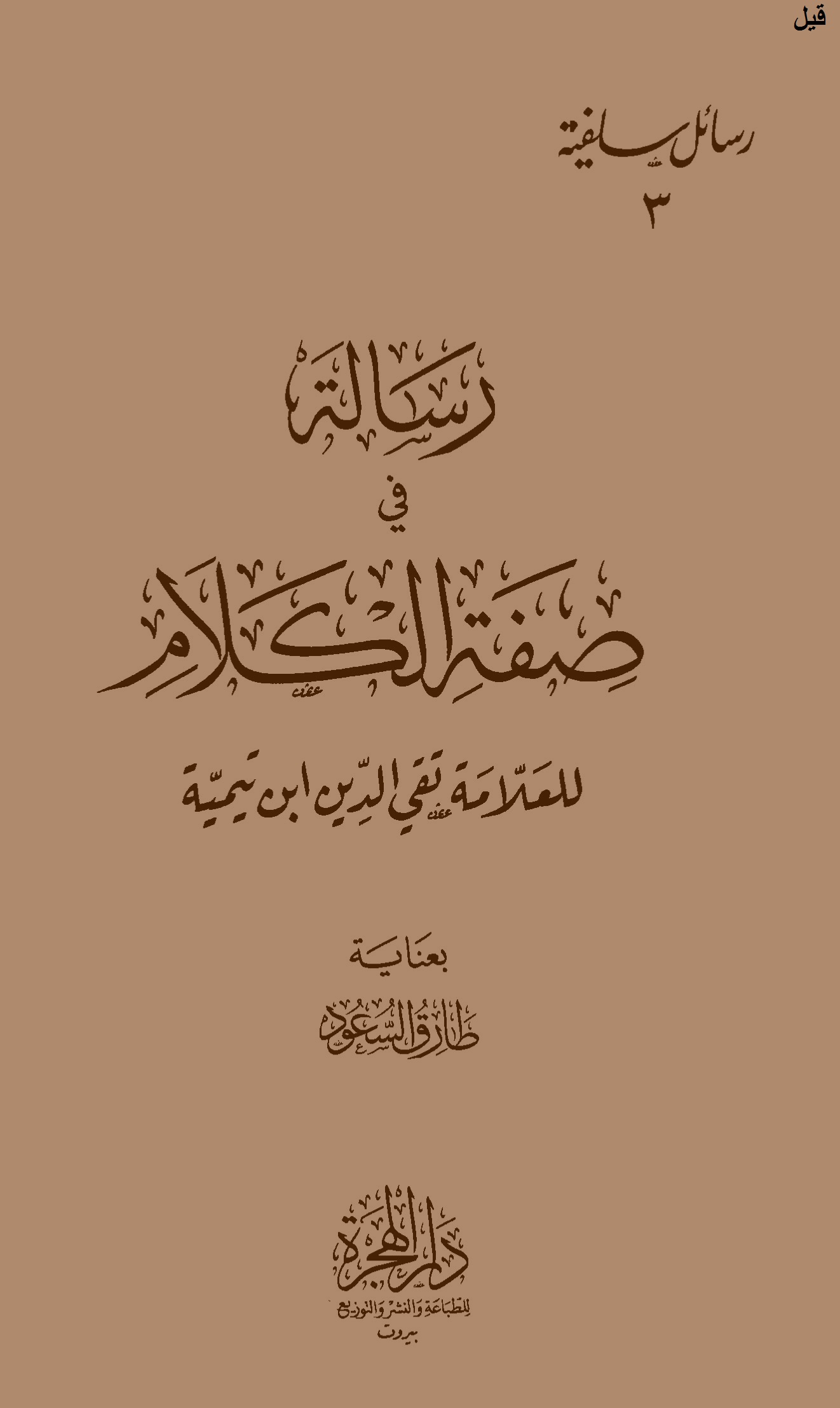Réplique à Ibn Taymiyya au sujet de sa prétention que Allâh parle par le moyen de lettre et de sons :